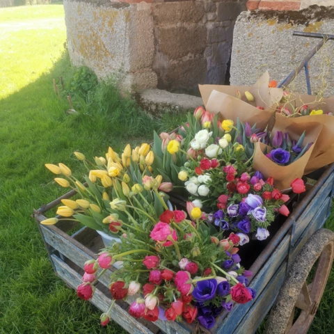 Retrouvez les fleurs de Prairie au marché de Joigny tous les samedi matin dans la halle producteur de mars à octobre, ainsi que dans les paniers de légumes du mercredi de la Ferme en Goguette. Vous pouvez aussi venir acheter des seaux de fleurs en vrac à la ferme (Champlay) pour composer vous même vos décorations, pour cela vous pouvez me contacter par mail ou téléphone (prévoir un délais 2 semaines min. entre la commande et la date de votre événement)